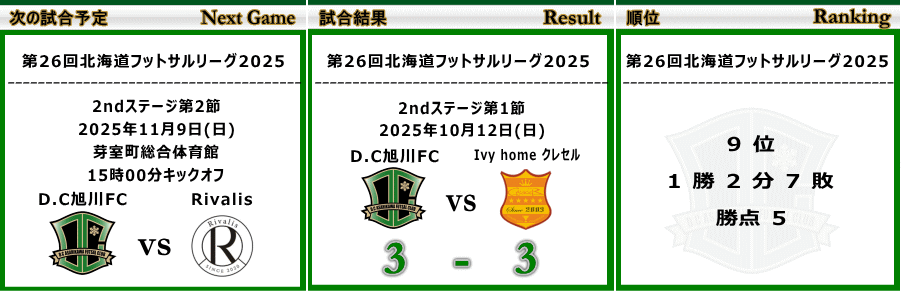 2025.10.12 第26回北海道フットサルリーグ2025-2nd第1節試合結果